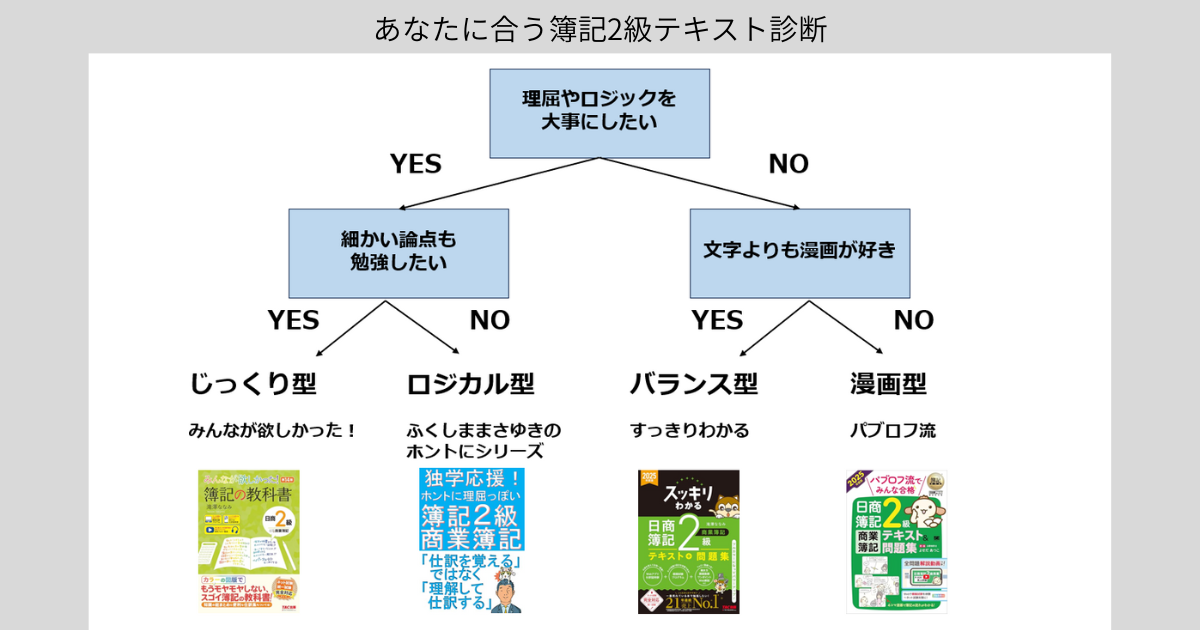 自分にあったテキストを選ぶ→簿記2級テキスト診断を受けてみよう。
